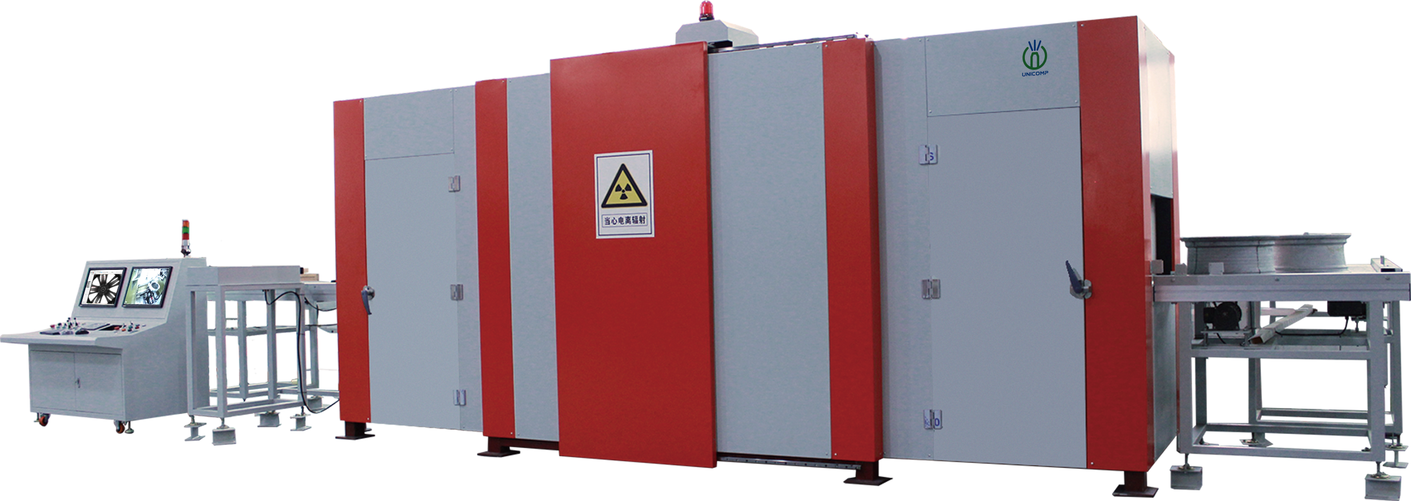 Sistema de raios X em linha para inspeção automática de rodas: