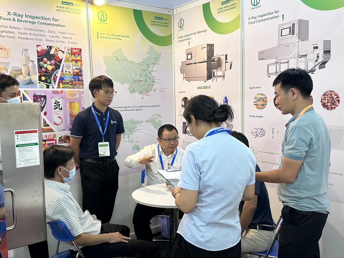 Durante a exposição, a Unicomp Technology demonstrou muitas tecnologias inovadoras, incluindo sistema de rastreamento de matérias estranhas em alimentos e algoritmo de aprendizado profundo de IA.Essas tecnologias são projetadas para ajudar as empresas a gerenciar e controlar a produção de alimentos de maneira mais conveniente e precisa, podem detectar com rapidez e precisão matérias estranhas em alimentos, defeitos de embalagem etc.